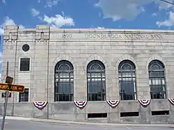Ticonderoga National Bank is a historic bank building located at Ticonderoga in Essex County, New York. It was built between 1927 and 1929 and is a two-story, three by seven bay, trapezoidal granite building in the Renaissance Revival style. It features a monumental arcade, large round arched windows, and a massive banking hall.[2]