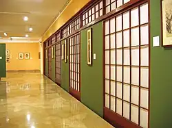 Exhibitions cover different aspects of Japanese culture, displaying traditional and modern art, and emphasizing the aesthetic values unique to Japanese art.[9] According to Japanese custom, a room is sparsely furnished with items selected for specific events and for the season. Hence the exhibitions are changed approximately every three months, and subject, style and period are common to all of them. Exhibitions are accompanied by illustrated catalogues and explanatory texts.[10] The museum store also sells exhibition posters.[11]