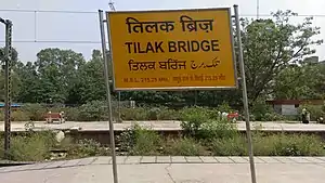 Tilak Bridge railway station is a railway station in New Delhi. Its code is TKJ.[1] The station is part of the Delhi Suburban Railway. The station consists of four platforms. Construction of additional 5th and 6th new railway line is happening between Tilak Bridge and New Delhi to enhance capacity of already saturated tracks. With this three additional platforms have been constructed (new platform 6 and 7 would be an island platform ) at Tilak Bridge. This will take the total number of platforms to seven.[2]