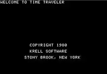 Time Traveler[1][4] is a 1980 fantasy text adventure developed by Krell Software. The game was released on the 16K, Level II TRS-80, Apple II, Commodore PET, and Atari 8-bit family