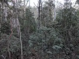 Tinderry is a locality in the Snowy Monaro Region, New South Wales, Australia.[2][3] It lies to the east of Michelago and South West of Captains Flat. At the 2016 census, it had a population of 66.[1] The western part of the locality lies on the Tinderry Range, which includes Tinderry Peak (1,619 m (5,312 ft)) and Tinderry Twin Peak. A large part of the mountainous terrain forms Tinderry Nature Reserve. Further east the terrain is more open and includes grazing country and the small settlement of Little Tinderry. A public school was located at Little Tinderry from 1899 to 1913, generally described as "half-time", but "provisional" in 1900 and early 1901.[4]