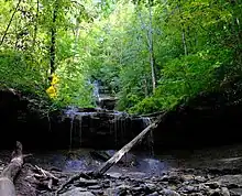 Tioga Falls is a 130-foot waterfall located near the outskirts of West Point, Kentucky.[1] The falls are fed from the nearby Tioga Creek, a tributary to the Ohio River. The falls are accessed by way of a 1.8 mile trial managed by the U.S. Army Garrison at Fort Knox.[2] As Tioga Falls are within the boundaries of the military base, the trail is periodically closed to the public for safety reasons.
