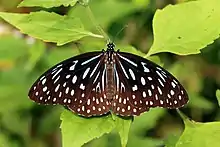 ![]() | ![]() | Tirumala septentrionis (Butler, 1874) | dark blue tiger | Sikkim, into Assam, Myanmar, Cambodia and Southeast Asia; Odisha; West Bengal, southern India, the Western Ghats and Nilgiris; Sri Lanka |