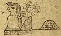 ![]() Tlacateotl in the Codex Xolotl, with his name glyph (top) and the glyph for Tlatelolco (right). | |