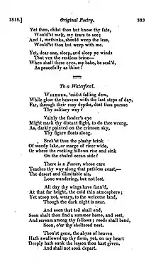 "To a Waterfowl" was first published in the North American Review in Volume 6, Issue 18, March 1818.[5] It was later published in the collection Poems in 1821.[1]