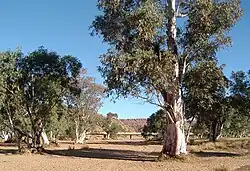 The riverbed contains sites and trees sacred to the local Arrente people including strong associations with Yeperenye (Caterpillar) Dreaming and with certain old red-river gums in the river representing Kwekatja; pre-initiated boys following the river north.[1]