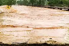 The Todd is in a very arid part of Australia and has zero to very low flow during 95% of the year.[4] When it does flow, it carries a heavy sediment load picked up from the grazing land around the Bond Springs homestead which lends its waters a milky chocolate colour and renders them completely opaque.