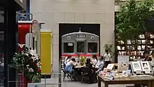 The cab end of former car DeHa 7702 is preserved inside the Maruzen Ikebukuro bookshop in Toshima, Tokyo. Built in March 1966 as 7000 series car DeHa 7046, it was withdrawn in December 2015, and moved to the ground floor of the Maruzen Ikebukuro bookshop building in March 2017, while still under construction.[5]