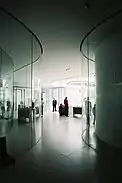The 74,000-square foot Glass Pavilion opened in August 2006 to considerable critical acclaim. ArtNet described it as "a striking symbol of cultural power. Intended to give pride of place to the institution's collection of art glass."[11] In his review for The New York Times,[13] Nicolai Ouroussoff wrote, "Composed with exquisite delicacy, the pavilion's elegant maze of curved glass walls represents the latest monument to evolve in a chain extending back to the Hall of Mirrors at Versailles." Ouroussoff commented on the pavilion's relationship with the museum's other buildings: "The Glass Pavilion is part of a loosely knit complex that includes the Beaux-Arts-style art museum here and the University of Toledo's Center for the Visual Arts, designed by Frank Gehry. With its grand staircase leading up to a row of Ionic columns, the original museum is both a temple to art and a monument to the belief in high culture's ability to uplift the life of the worker. The new structure's low, horizontal form, fits in this context with remarkable delicacy, as if the architects hesitated to disturb the surroundings." The Pavilion is host to 700 public glass blowing exhibitions per year, as well as community events such as (Re)New Year's Days, inspired by art, yoga, movement, and meditation, and Art of the Cut, a celebration of Black barbers and their roles as artists and men's wellness advocates that was sponsored by ProMedica.[1]