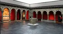 The Peristyle, a 1,750-seat concert hall in the east wing, is the principal concert space for the Toledo Symphony Orchestra and hosts the museum's Masters series. Added in 1933, it was designed in classical style to match the museum's exterior. Seating is divided into floor and riser seating, with the riser seating arranged in a half-circle, similar to a Greek theater. At the back of the riser seating are 28 Ionic columns that give the concert hall its name.