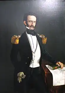 Tomás Cipriano Ignacio Maria de Mosquera y Figueroa Arboleda Salazar, Prieto de Tovar, Vergara, Silva, Hurtado de Mendoza, Urrutia y Guzmán (September 26, 1798 – October 7, 1878) was a Colombian general, political figure. He was president of Colombia four times. The first time was as president of Republic of New Granada from 1845 to 1849. During the Colombian Civil War of 1860–1862 he led liberal forces in a civil war against conservative factions. After the liberals won, a new, federalist constitution was implemented, which established a two-year presidency, and the nation renamed the United States of Colombia. Mosquera served twice as president of the new government. From 1861 to 1862 he served in a non-elected, interim manner, while the constitution was written. From 1862 to 1864 he served in an elected manner. He had a fourth term from 1866 to 1867. Due to the liberal reforms carried out under his leadership, he is considered one of the most important persons in Colombian history of the 19th century.