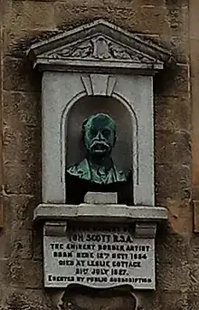 ![]() Bust of Scott at 51 High Street, Selkirk, Scotland | |