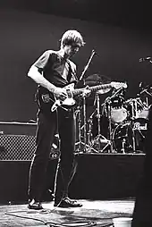 Tom moved to Wilmington, Delaware, with his family when he was six.[7] He began studying piano at an early age, but switched to saxophone in middle school after hearing a record by Stan Getz. Jazz saxophonists such as John Coltrane and Albert Ayler inspired him.[8] Verlaine initially was unimpressed with the role of the guitar in both rock music and jazz, but was inspired to take up the instrument after hearing the Rolling Stones' "19th Nervous Breakdown" during his adolescence,[9] at which point he began a long period of experimentation to develop a personal style. A later musical influence of Verlaine's became jazz musician Miles Davis' electric-period recordings, particularly the Japanese LPs Agharta (1975) and Dark Magus (1977), which he was able to obtain as imports.[10]