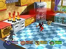 Tom and Jerry in War of the Whiskers is a fighting video game developed by VIS Entertainment, published by NewKidCo for PlayStation 2, GameCube, and Xbox. It is the sequel to the 3D cartoon fighting video game Tom and Jerry in Fists of Furry for Nintendo 64 and Microsoft Windows. It allows up to four players to play simultaneously. It is the only NewKidCo game and the only Tom and Jerry game, released to receive a T rating. The PlayStation 2 version was released in all major regions, and the GameCube and Xbox versions were only released in North America. The game received mixed reviews from critics, with Metacritic scores of 63/100, 64/100, and 50/100 on PlayStation 2, GameCube, and Xbox, respectively.