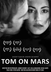 Tom On Mars is a 2005 16mm black and white science fiction film directed by Andrei Severny and starring Laila Lemhadden, Russel Smith, and Peter DuPre.[1] The seven-minute love-story of Tom and Maria is based on a number of real-life cases of dangerous psychological challenges experienced by astronauts during long space assignments or by researchers staying in remote areas such as Antarctica.[2]