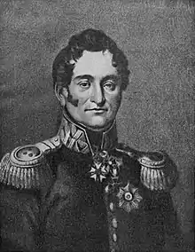 Tomasz Andrzej Adam Łubieński, comte de Pomian (24 December 1784, in Szczytniki near Kalisz – 27 August 1870, in Warsaw) was a brigadier general in the Polish army, senator, landowner in Kalisz and businessman. Hoping to liberate Poland, he fought on the French side in the Napoleonic Wars, fighting at Essling, Wagram, Dresden, Ulm, Leipzig, Hanau and Berezina, for which Napoleon made him a baron de l'Empire. He also later took part in the November Uprising against Russia.