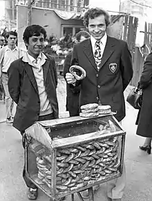 Tommy Lindholm (right) in Istanbul, 1971, with a simit seller.