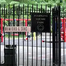 "Tompkins Square Park" is a song by English rock band Mumford & Sons. It was released as the fourth single from their third studio album, Wilder Mind, on 2 November 2015, and also serves as the opening track for the album. The song peaked at number 86 on the UK Singles Chart.