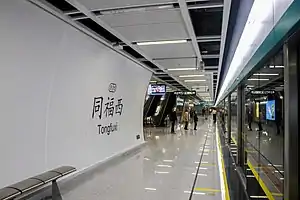 Tongfuxi Station (Chinese: 同福西站; pinyin: Tóngfúxī Zhàn; lit. 'Tongfu West station') is a station on Line 8 of the Guangzhou Metro, between Cultural Park station and Fenghuang Xincun station. It is located underground in the Haizhu District and started operation on 28 December 2019.