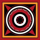 Circular motifs represent the sun, the symbol of power. Golden kris ('daggers') motifs symbolise wealth. Geometric spiralling designs and motifs are used that include buffalo heads - representing a prosperity and ritual sacrifice. Cockerels are represented in the colours of red, white, yellow and black; colors which represent the indigenous Toraja religion the Aluk To Dolo (the Way of the Ancestors). Black symbolises death and darkness; yellow, God's blessing and power; white, the colour of flesh and bone symbolising purity; and red, the colour of blood symbolising human life. The pigments are sourced from common materials; black from soot; white from lime; red and yellow from colored earth; and tuak (palm wine) is used to strengthen the colors.