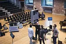 ‘2045: The Year Man Becomes Immortal?’ is a composition for small chamber ensemble, electronics, two voices and choir that premiered at St. James's Piccadilly in London on July 6, 2016.[18] A private performance was held at Cowdray Park on July 9, 2016.[19] Again the composer deviates from the traditional operatic form combining operatic voices with elements of popular music, downtempo electronica and sound art.[20] The piece was written for soprano, countertenor, piano trio and mixed choir and features sonifications of light curves captured by NASA’s Kepler space observatory.[1][21]