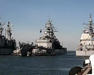 Tontogany (YTB-821) with USS South Carolina (CGN-37)