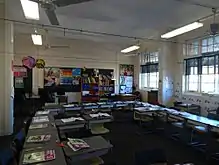 Changes and additions to facilities since the 1960s have included: a school swimming pool (1966); new classroom buildings (1969–71); the removal of three of the early timber school buildings in the 1970s; a new library and a dental clinic facing Mary Street (1973); two pre-school buildings south of the swimming pool, near Margaret Street (by 1978); a Centenary Hall facing Arthur Street; covered ways south of Block A; and a new administration building north of Block A (1991). The last of the early school buildings, the 1928 Infants building (later designated the Clare Gormley Block), was demolished sometime between 2009 and 2011. In 2015, 807 students were enrolled.[55][71][72][73][74][75][76][77] Students utilise sports fields in Queens Park to the west, and the Clive Berghofer Stadium to the north.[1]