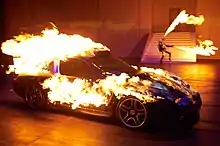There were also 3D presentations during the show; for example MPH 2005, included a virtual and life-size 3D Apache helicopter shooting at a real Lotus Elise as it raced around the arena. Pyrotechnics added live explosions to the display, simulating missile hits and ricochets from gunfire; due to its success, it made a return appearance in 2006. MPH 2006 also included a virtual 3D Hummer being dropped out of an aircraft, shot down by a Tornado jet, and landing in pieces in the ocean. A 3D Gatso Camera/Dragon of the future battled it out with the Stig at MPH 2007.