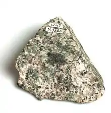 The so-called Top of the Mont Blanc is a collection piece on display in the Oval Room of Teylers Museum.[1] The specimen was cut off from the highest findable piece of exposed rock of the Rocher de la Tournette, 4,677 metres (15,344 ft) high on the snow covered summit ridge of the Mont Blanc on 3 August 1787, during one of the first climbs of the mountain by the Swiss scientific pioneer Horace Bénédict de Saussure.[2]