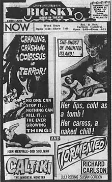 Tormented is a 1960 American horror film directed and produced by Bert I. Gordon for Allied Artists Pictures Corporation, and starring Richard Carlson.[1] The film was featured in the fourth season of the television series Mystery Science Theater 3000.[2][3]