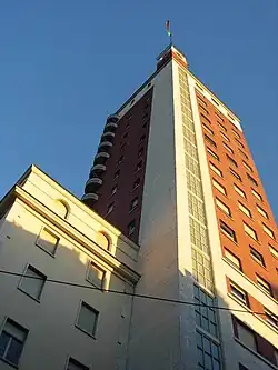 The building occupies a little more than two-thirds of a city block, consisting of a 9-storey low-rise section, and a 19-storey high-rise section reaching 87 metres at its roof, upon which rises an antenna tower, giving the building a total height of 109 metres; until 1940 it was the tallest continuously habitable building in Italy. During World War II its roof mounted one of the 58 air raid sirens in Turin, and the building sustained minor damage during the bombing of 13 July 1943.