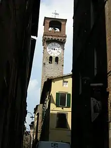 The Torre delle Ore or Torre dell'Orologio is a clock-tower or turret clock located on Via Fillungo in central Lucca, region of Tuscany, Italy.