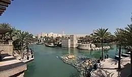 Dubai Creek is a salt water creek located in Dubai, United Arab Emirates (UAE). It ends at Ras Al Khor Wildlife Sanctuary. Some sources say that the creek extended as far inland as Al Ain, and that the Ancient Greeks called it River Zara.[19] Historically, the creek divided the city into two main sections – Deira and Bur Dubai. It was along the Bur Dubai creek area that members of the Bani Yas tribe first settled in the 19th century, establishing the Al Maktoum dynasty in the city.[20] In the early 20th century, the creek, though incapable then of supporting large scale transportation, served as a minor port for dhows coming as far away as India or East Africa. Although it impeded the entry of ships due to current flow, the creek remained an important element in establishing the commercial position of Dubai, being the only port or harbour in the city.[21] Dubai's pearling industry, which formed the main sector of the city's economy, was based primarily on expeditions in the creek, prior to the invention of cultured pearls in the 1930s.