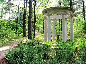 - The Inner Park — a native plant garden and mixed hardwood trees woodland, with pathways and Classical Revival style architectural elements, including the Peace Temple, a garden folly, the Pope Urn, and statuary.[16]