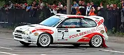 The Toyota Corolla WRC is a World Rally Car built for the Toyota Castrol Team by Toyota Motorsport GmbH to compete in the World Rally Championship. It is based upon the E110 version of Toyota Corolla road car. The car was debuted at the 1997 Rally Finland, and replaced the Toyota Celica Turbo ST205. It won a total of four rally victories and the 1999 World Manufacturers' title.