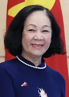 Trương Thị Mai (born 23 January 1958) is a Vietnamese politician. She currently serves as the Permanent Member of the Secretariat[lower-alpha 1] and Head of the Central Organization Commission of the Communist Party of Vietnam, being the first woman to hold these positions.[1]