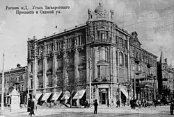 At the beginning of the 20th century, G.G. Pustovoytov's trading house was considered as one of the highest buildings in the city. As in most profitable houses of that time, the rooms of the house of G.G. Pustovoytov were rented out. After the completion of the building, the Rostov branch of the Association of Russian-French rubber, gutta-percha and telegraph production plants was located in the building under the company "Provodnik". Also there was the jewelry and watch store of A. Girshtein, the "Central" and "London" hotels.[2]