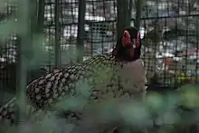 Cabot's tragopan (Tragopan caboti) is a pheasant found in south-east China. The common and scientific names of this large bird both commemorate the ornithologist Samuel Cabot III.[3] Other common names include the Chinese tragopan and the yellow-bellied tragopan. The population is divided into two subspecies, of which the dominant subspecies is found in the provinces of Fujian, Jiangxi, Zhejiang, and Guangdong, and T. c. guangxiensis is confined to northeastern Guangxi and southern Hunan. The IUCN has assessed it as being a "vulnerable species".