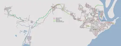 Tramway map of The Newcastle Tram System, covering Metropolitan Newcastle, New South Wales, Australia