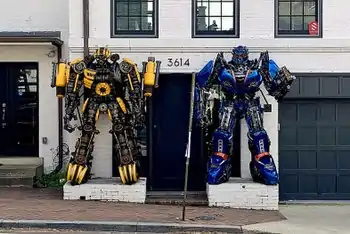 Transformers are two metal sculptures depicting characters from the Transformers media franchise that were installed outside of the Georgetown home of Newton Howard, a brain and cognitive scientist who is a professor at Georgetown University in Washington, D.C. The two-ton (1,814 kg) sculptures were made from recycled motorcycle and car parts and depict Bumblebee and Optimus Prime. They were installed in January 2021, leading to a mixed reaction from locals and legal challenges from the Old Georgetown Board and local Advisory Neighborhood Commission.
