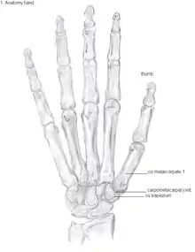 - ↑ North ER, Eaton RG (March 1983). "Degenerative joint disease of the trapezium: a comparative radiographic and anatomic study". J Hand Surg Am. 8 (2): 160–6. doi:10.1016/s0363-5023(83)80008-2. PMID 6833724.