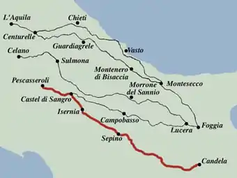 The Tratturo Pescasseroli-Candela is a drovers' road running between Pescasseroli in Abruzzo and Candela in Apulia. It is the third longest such route in southern Italy,[1] and is also named La via della lana ("The wool pathway").[2]