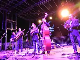 Despite the numerous accolades and awards the band received, Del recognized that the band needed to think about their future saying, "If something ever happens to me ... you should think about doing something now, instead of starting out cold. This is a progression." Ronnie says, "We had to figure out something we could do, while still performing with my dad. We don’t want this to be the Del-less McCoury Band."[2] The band was presented with an opportunity at the annual Delfest Music Festival, an annual bluegrass festival in Cumberland, Maryland, held at the Allegany County Fairgrounds that was started by Del McCoury.[3] At Delfest, the band met The Lee Boys, a funk and gospel band, and played together through the weekend, finding an immediate connection. Plans were made for the two bands, minus Del McCoury, to hit the road for brief tour in the Southeast in January 2009.[4] The band took the name the Travelin' McCourys for the brief tour. Since then they have regularly toured across the country, sharing the stage and collaborating with a number of artists including, Jeff Austin, Keller Williams, and Bill Nershi.