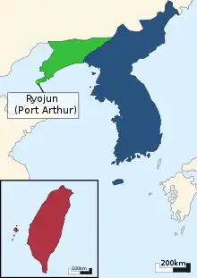 Annexed by Japan, but temporarily lost due to the Triple Intervention; Kwantung Leased Territory (Ryojun) was later re-annexed after the Russo-Japanese War