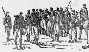 In 1862, the Uruguayan Blanco Party, traditionally hostile to Brazil, and now alarmed because its bitter enemies[37] had seized power in Buenos Aires too,[38] felt itself to be acutely short of allies. It began a covert diplomatic campaign to turn Paraguay aggressively[39] against Buenos Aires. This campaign, which continued through 1864, insinuated that Buenos Aires had designs on both Paraguay and Uruguay, who should make a warlike alliance, detach Argentine provinces and seize Martín García Island.[40] Although Francisco Solano López of Paraguay did not trust the Blancos and did not sign an alliance with Uruguay,[41] he nevertheless built up his strength. Because women had always grown the subsistence crops in Paraguay,[42] all able bodied men aged 16–50 were available for service and, in March 1864, they were conscripted for "intensive"[43] military training. By September 1864 López had an estimated 48,000–150,000 men on a war footing,[44][45][46][47] more than any other power in the region.[48] Wrote Thomas L. Whigham: "Paraguay was the only country in the region that could boast of its military preparedness and a full treasury".[49]