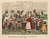 Of the twelve cartoons in Tregear's initial series, Summers designed and drew nine, two were reissues of Clay cartoons redrawn by Summers (from Isaacs), and Charles Hunt engraved all eleven as lithographs.[2] The last cartoon was credited as "Drawn & Engraved by I. Harris." "I. Harris" is now accepted as a pseudonym for Edward Williams Clay himself.[3] Another eight of the Clay cartoons redrawn by Summers (from Isaacs) were soon reissued to expand the first Tregear series to twenty plates.[4]