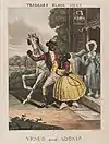 Tregear's first series was published in 1833 under the name "Life in Philadelphia." This was the same name that had been used by American illustrator Edward Williams Clay for his 1828-1830 cartoon series, published in the United States. "The cartoons were so popular that the term Life in Philadelphia became a standard phrase to refer to fashions, trends, and—most especially—black Philadelphians' social practices and sartorial choices."[1]: 137 In 1831, British illustrator William Summers redrew and enlarged ten of Clay's cartoons, which were engraved by Charles Hunt, and issued as color lithographs by London publisher Harrison Isaacs.
