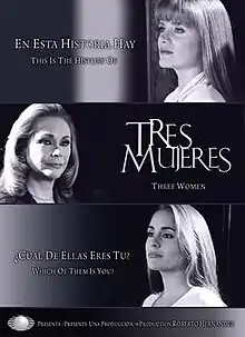Tres mujeres (English title: Three women) is a Mexican telenovela produced by Roberto Hernández Vázquez for Televisa in 1999-2000.[1] When it came out it was such a success that they added 3x the normal amount of chapters. There are 280 Chapters when there are normally about 100 chapters. The Telenovela ended in 2000, which made it the longest Telenovela produced by Televisa until Clase 406.