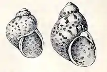 Drawing with two varieties of a shell of Tricolia petiti
