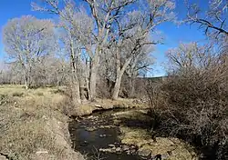 ![]() The creek viewed from a bridge on County Lane 6, above Mountain Home Reservoir. | |